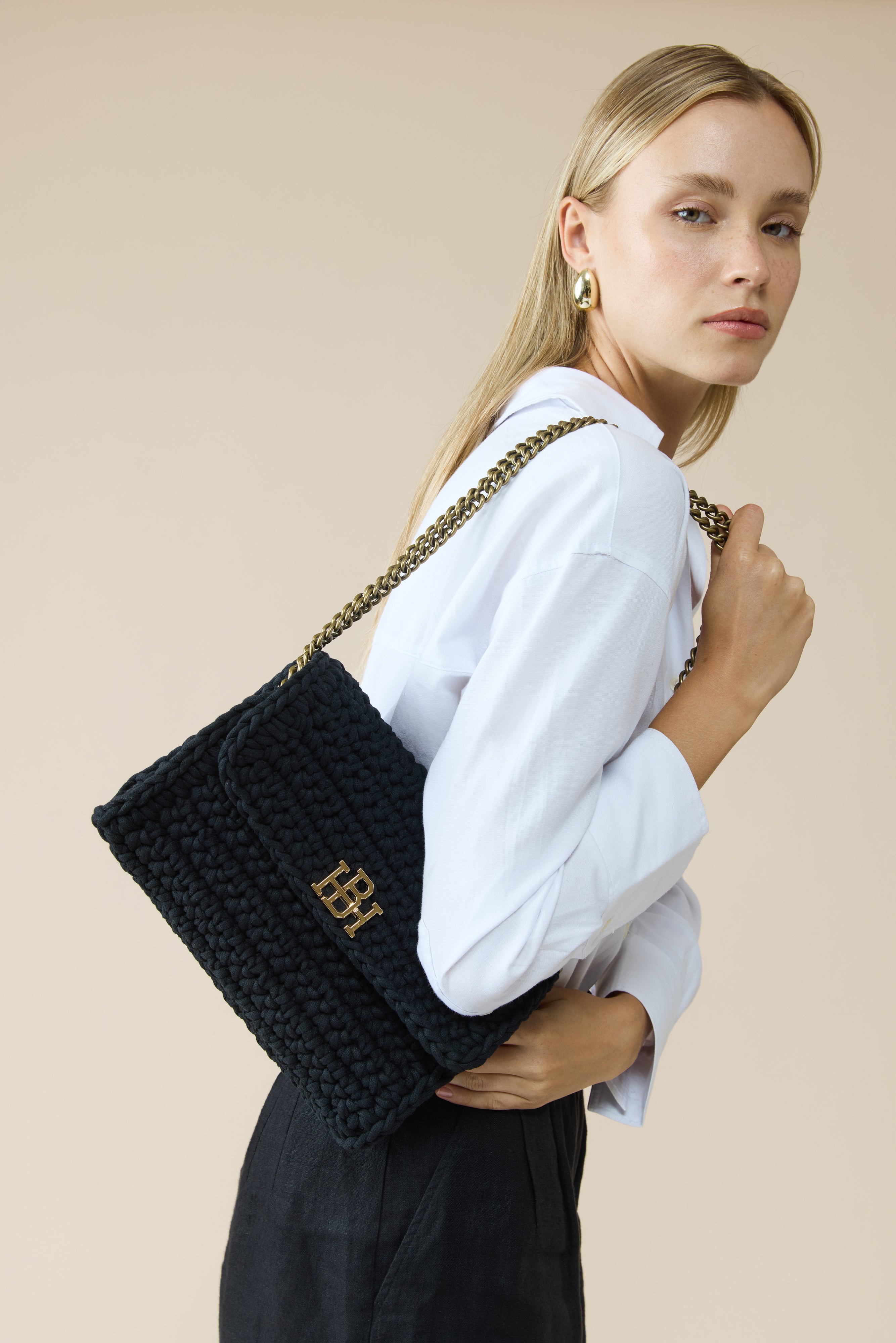תיק סרוג בעבודת יד המשלב בין פרקטיות ליוקרה. עשוי מחוטי כותנה איכותיים, התיק מציע פתרון אידיאלי ליום-יום ולעבודה, עם מספיק מקום לאחסון נוח של כל מה שצריך.
