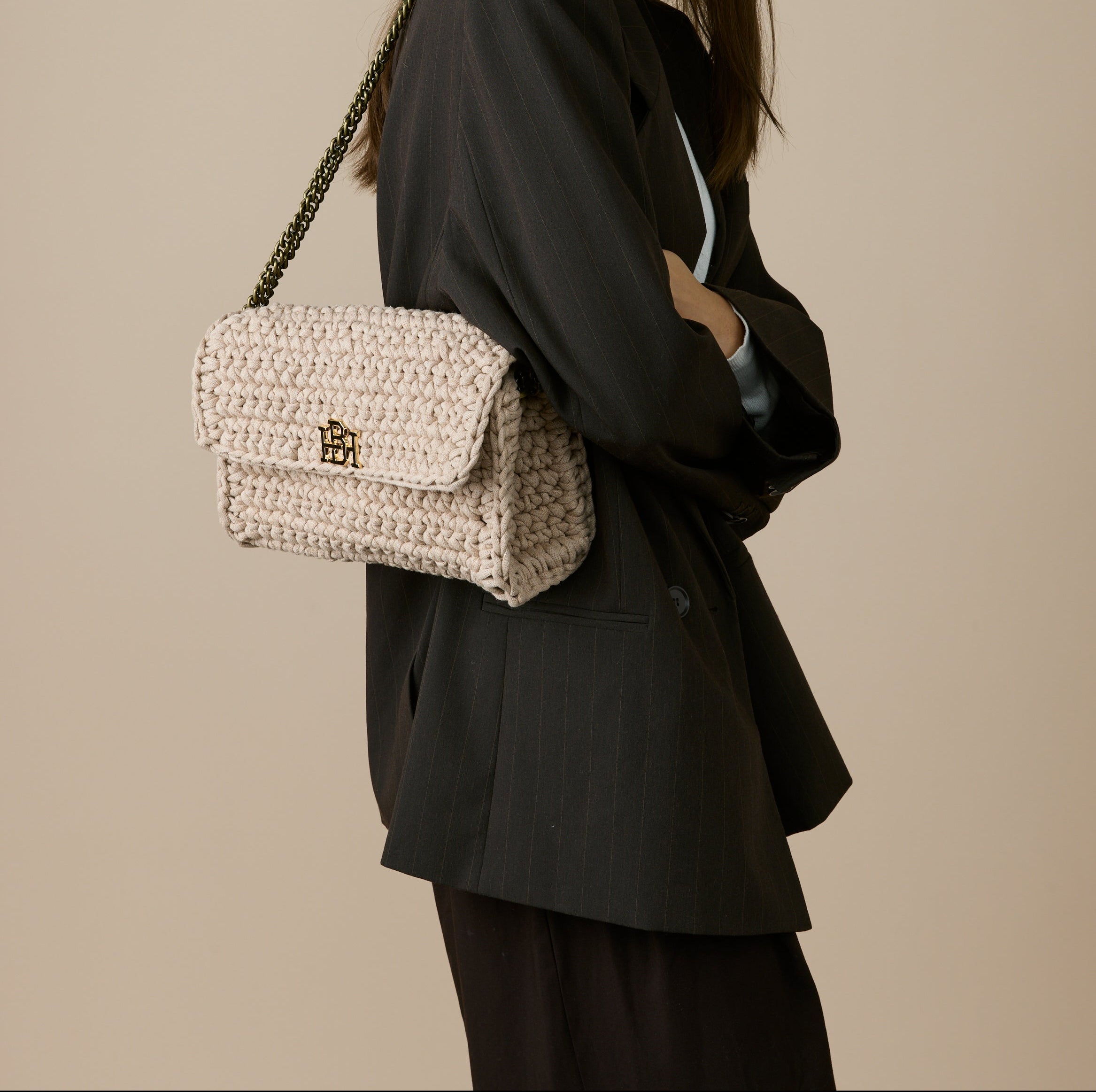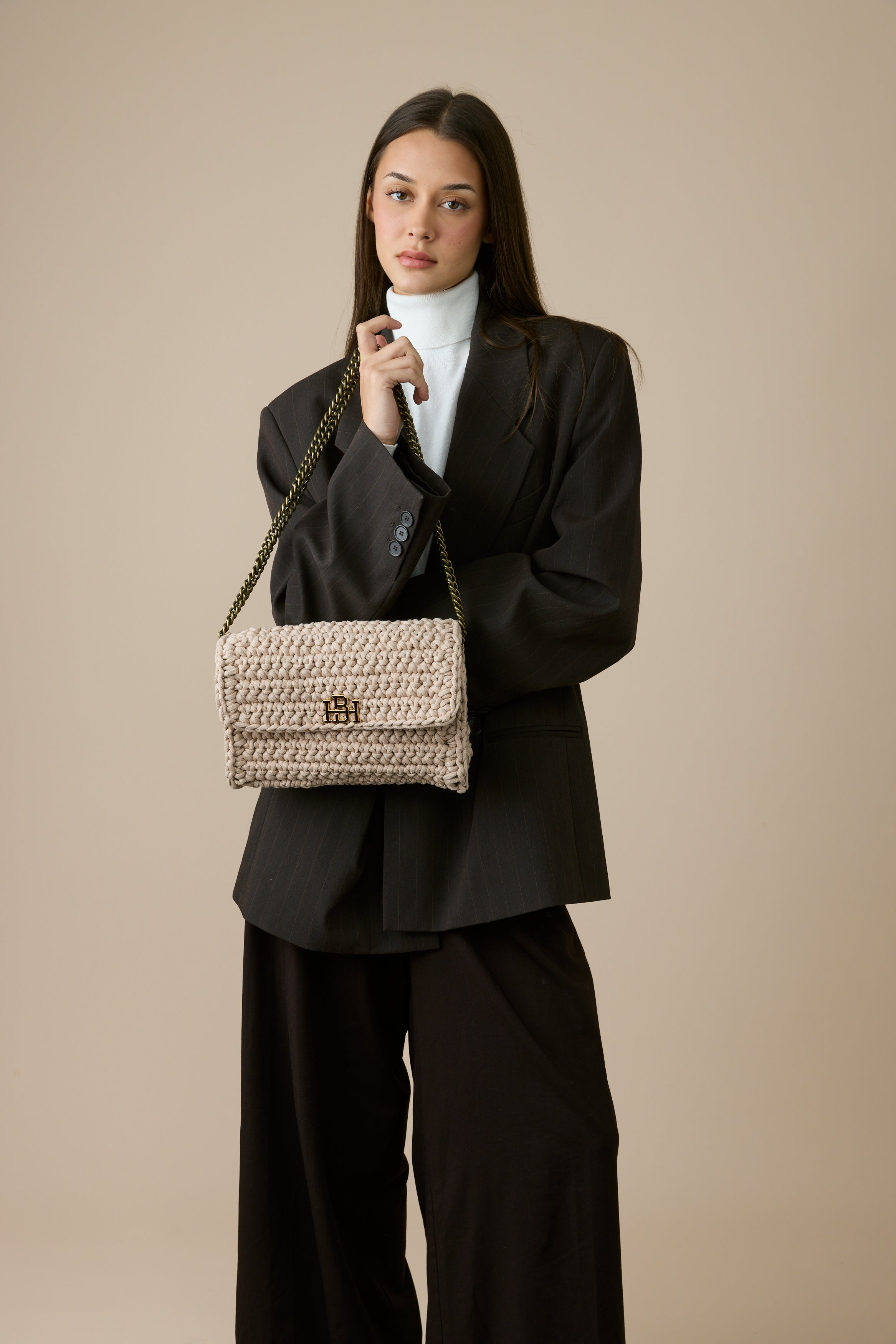 תיק סרוג בעבודת יד המשלב בין פרקטיות ליוקרה. עשוי מחוטי כותנה איכותיים, התיק מציע פתרון אידיאלי ליום-יום ולעבודה, עם מספיק מקום לאחסון נוח של כל מה שצריך.