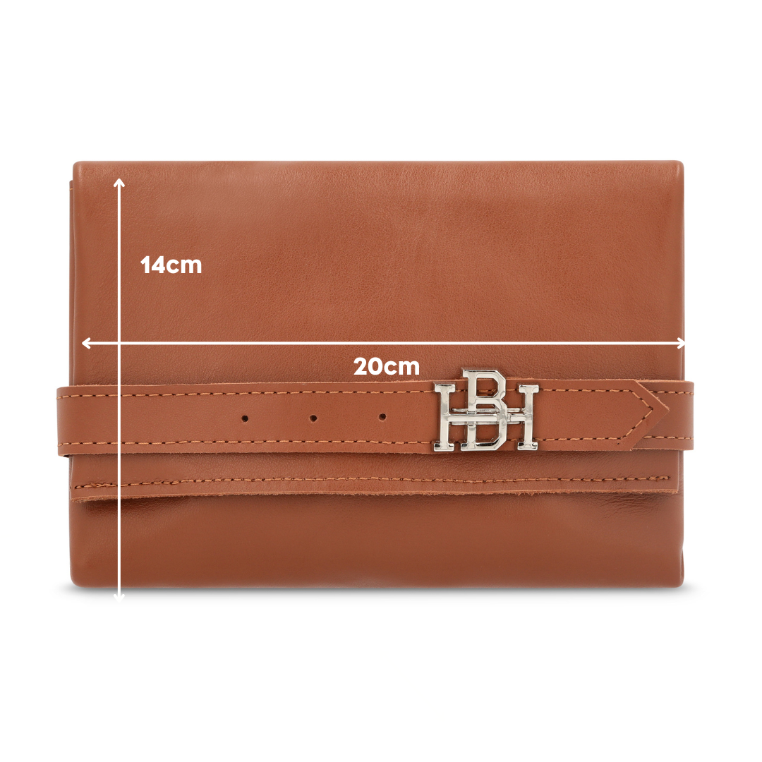 תיק עשוי מעור אמיתי מעוצב באופן מתוחכם, תיק רב תכליתי הכולל תא רוכסן אמצעי, רצועת שרשרת בצבע כסף/ זהב בהתאם לאבזם ללבישה על הגוף ורצועה חיצונית עשויה מעור עם אבזם הלוגו בהשראת אחת החגורות של boujee