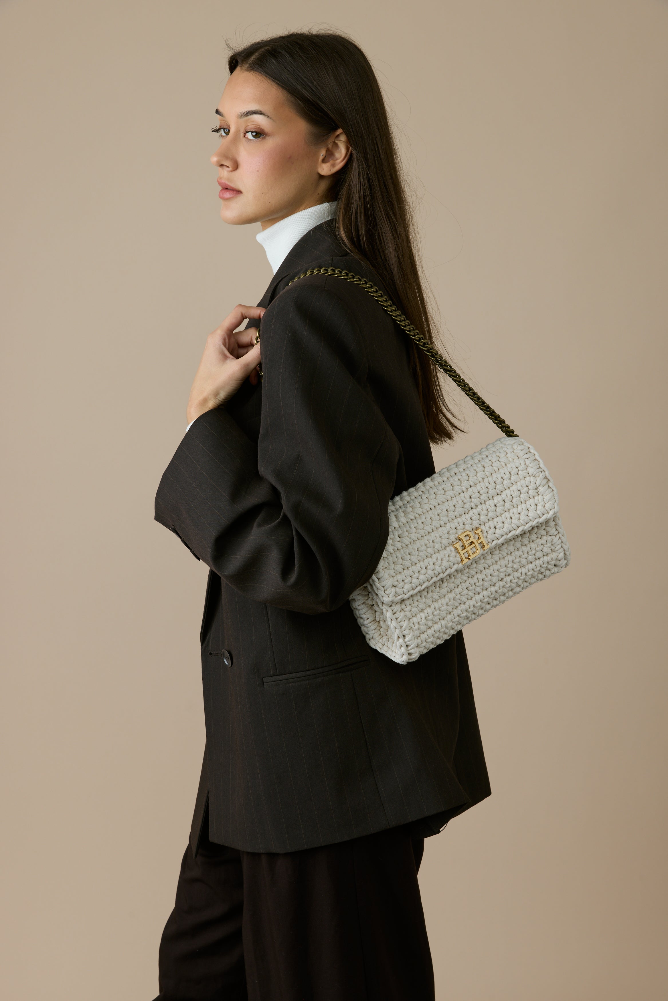 תיק סרוג בעבודת יד המשלב בין פרקטיות ליוקרה. עשוי מחוטי כותנה איכותיים, התיק מציע פתרון אידיאלי ליום-יום ולעבודה, עם מספיק מקום לאחסון נוח של כל מה שצריך.