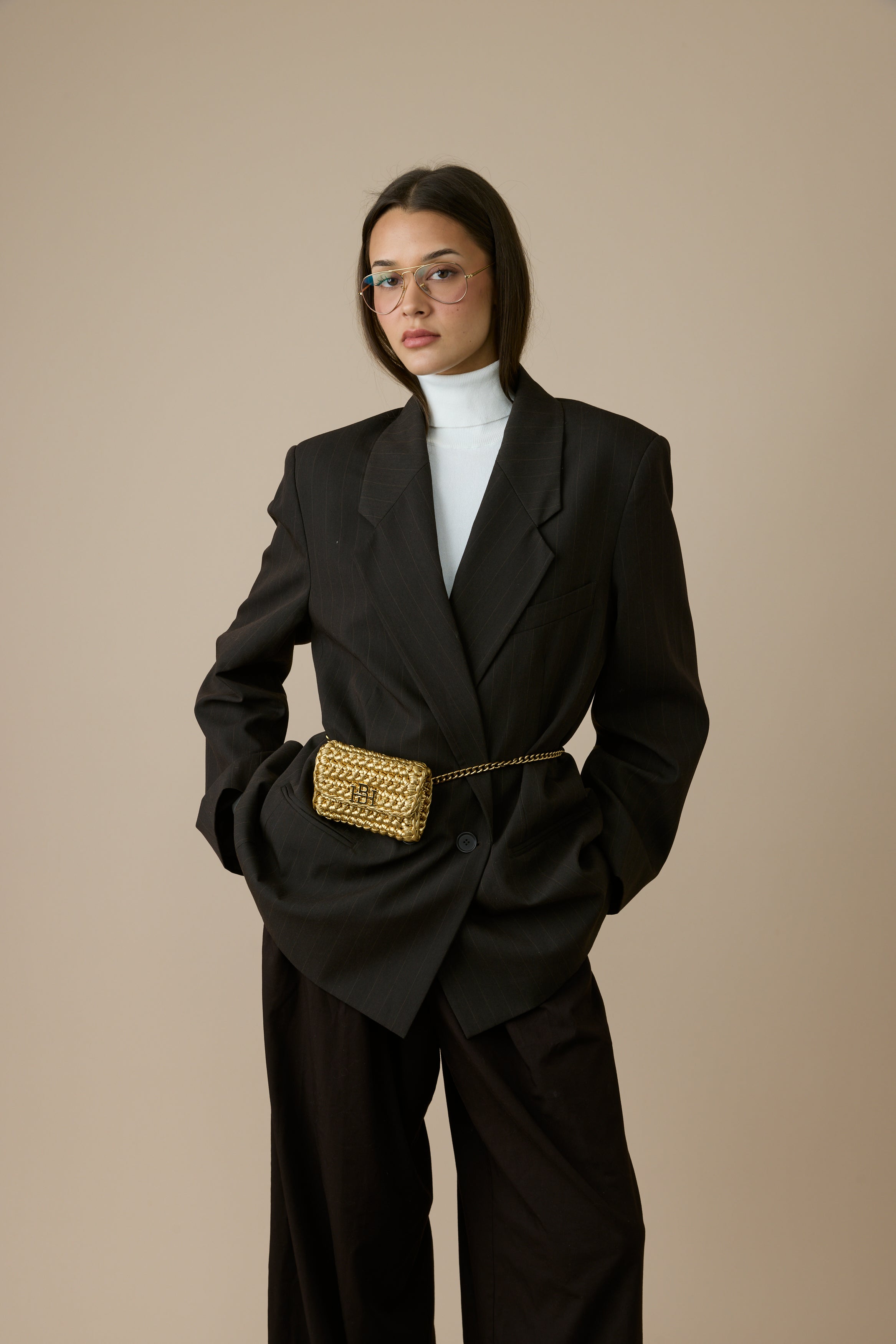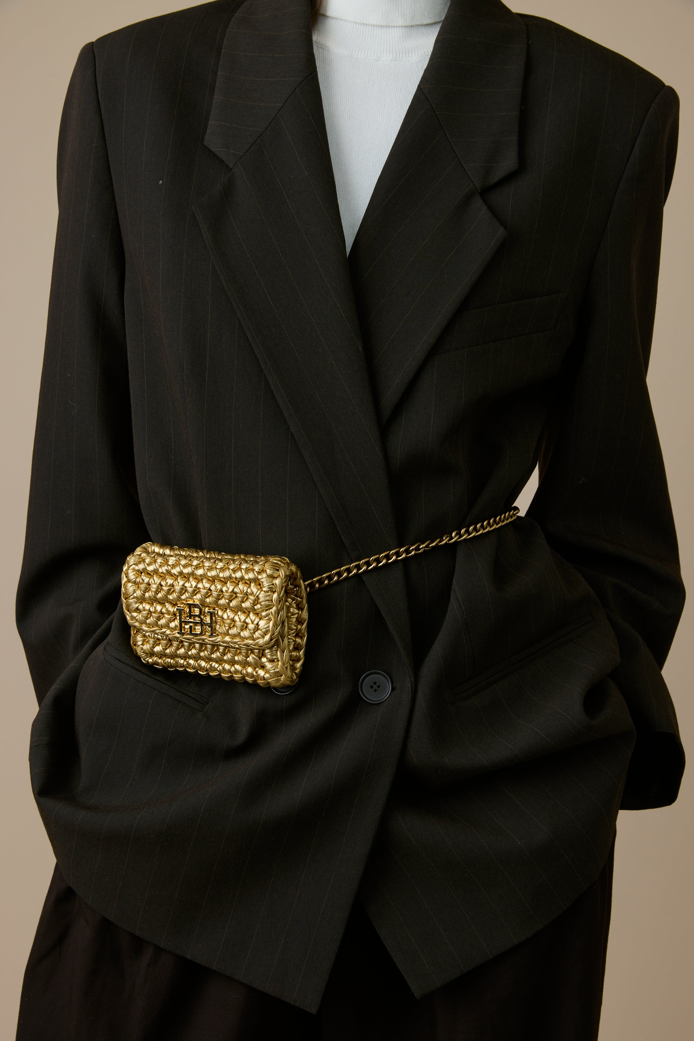 תיק ייחודי בעבודת יד, סרוג מחוטים איכותיים בגוון שחור. מעוצב בקפידה ומתאים לאחסון כרטיסים, מפתחות ופריטים קטנים (ללא מקום לטלפון נייד). מצויד ברצועת שרשרת באורך 115 ס״מ הניתנת לקיצור ולהתאמה אישית. הוא מושלם לשימוש