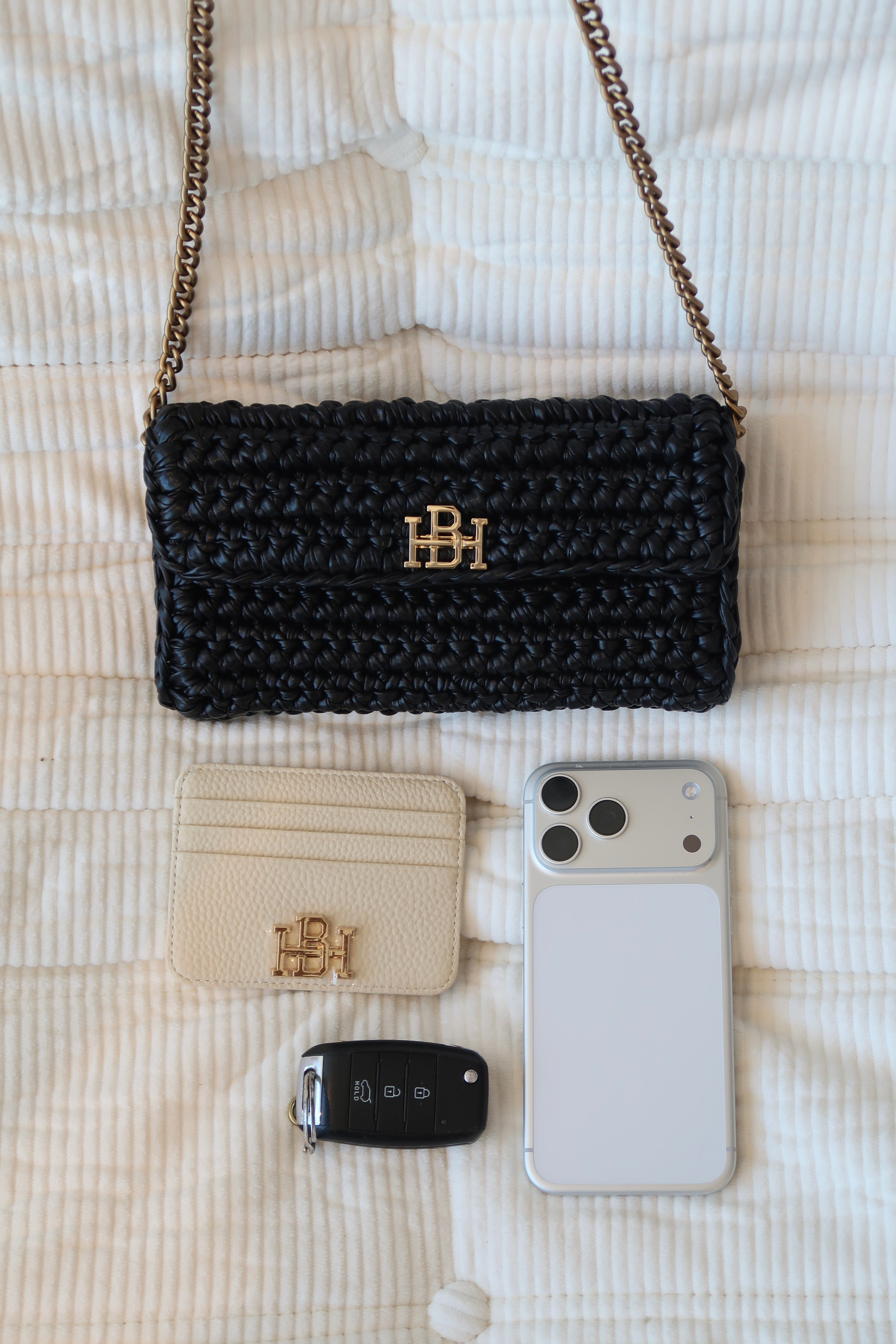 תיק ייחודי בעבודת יד, סרוג מחוטים איכותיים בצבע שחור. מעוצב בקפידה. הגרסה הגדולה של הדגם האהוב